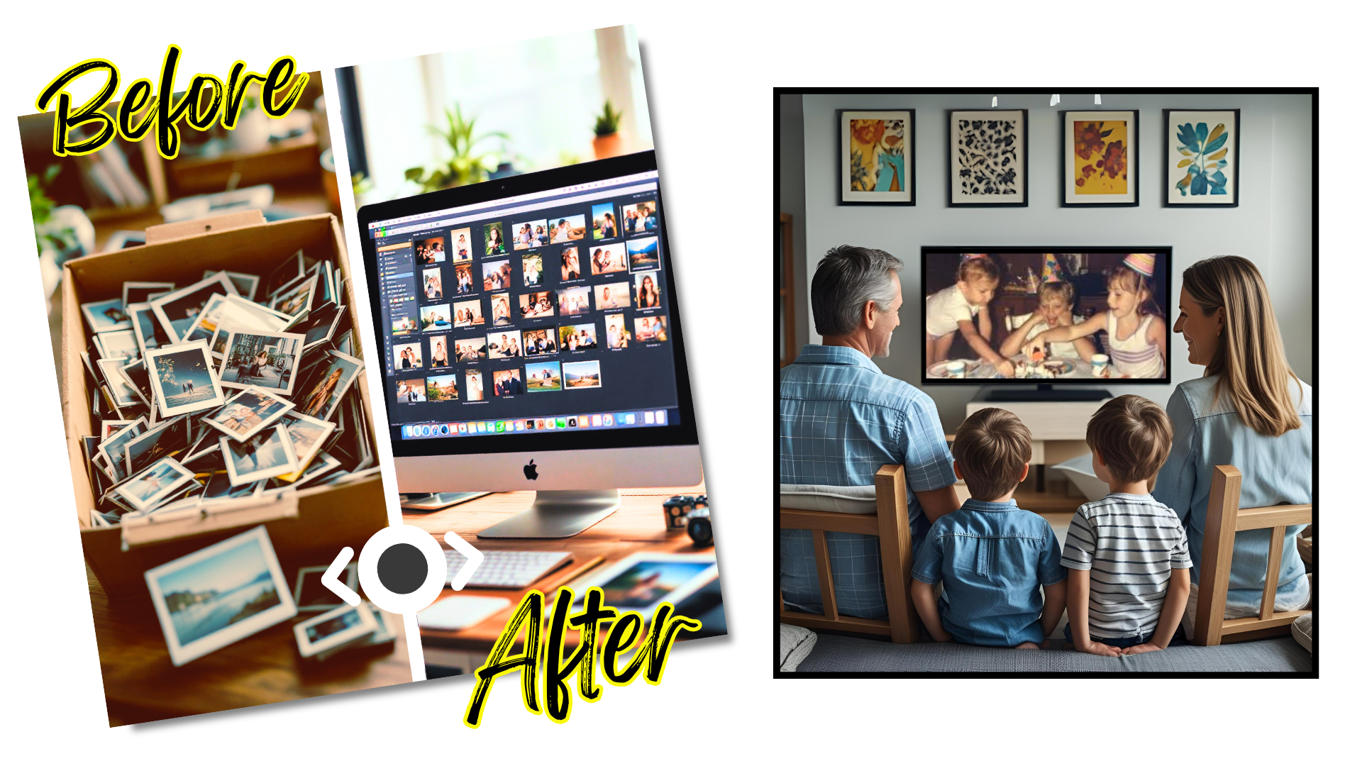 We convert VHS tapes, slides, and negatives into digital formats, preserving your memories for the future.