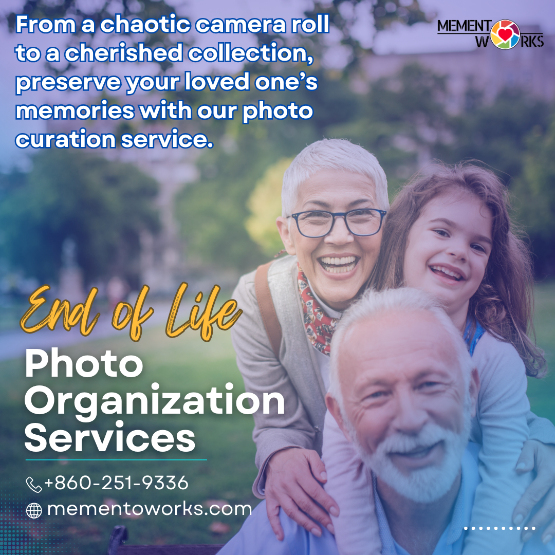 Losing a loved one is difficult, and navigating their digital memories can be overwhelming. Our End-of-Life Photo Organization Service offers a compassionate and efficient way to organize, store, and protect your parent’s cherished photos.